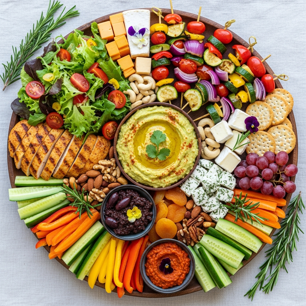 A2: Think of your platter as a canvas. Use a rainbow of colorful ingredients-shining red roasted peppers, deep green kale chips, golden roasted sweet potatoes, creamy hummus dips, and jewel-toned berries. Contrast textures with crunchy nuts, silky avocado slices, and tender marinated tofu or tempeh. Fresh herbs like basil or cilantro add bursts of color and aroma.