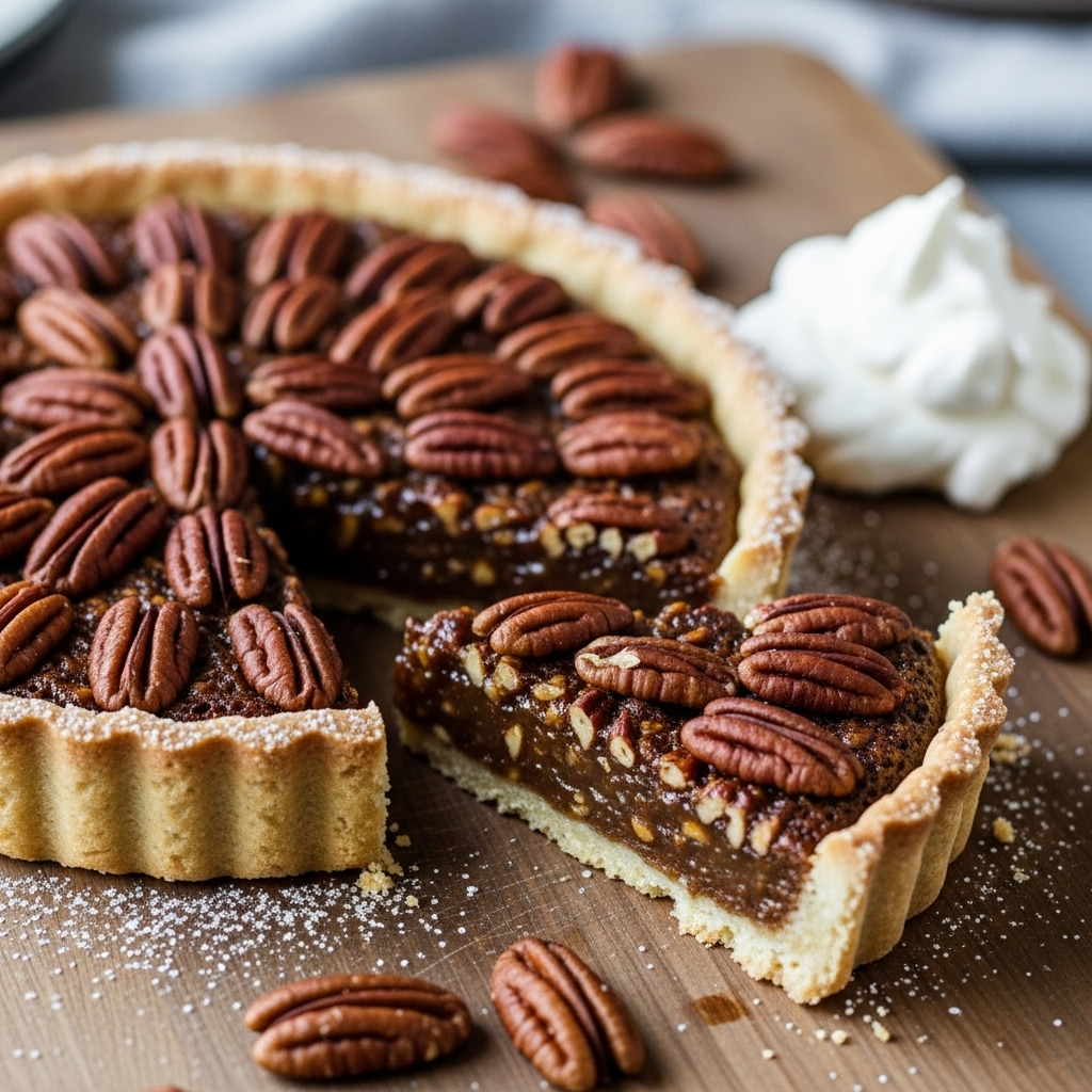 Present your tarte on a rustic wooden board or a sleek ceramic platter to highlight its warm golden hues. Garnish with a few toasted pecan halves and a dusting of powdered coconut sugar or a drizzle of organic maple syrup for added allure. Pair with a dollop of unsweetened whipped cream or a scoop of vanilla bean ice cream to contrast the crisp crust and luscious filling.