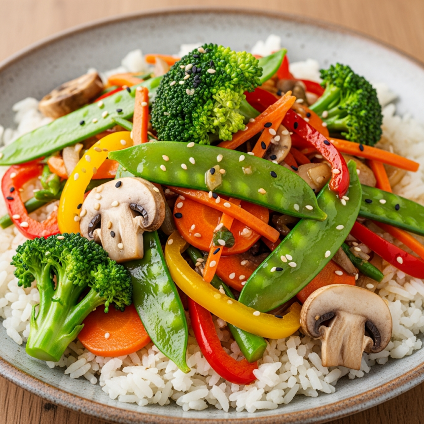 Vibrant Vegetable Stir-Fry with Rice: A Colorful Delight